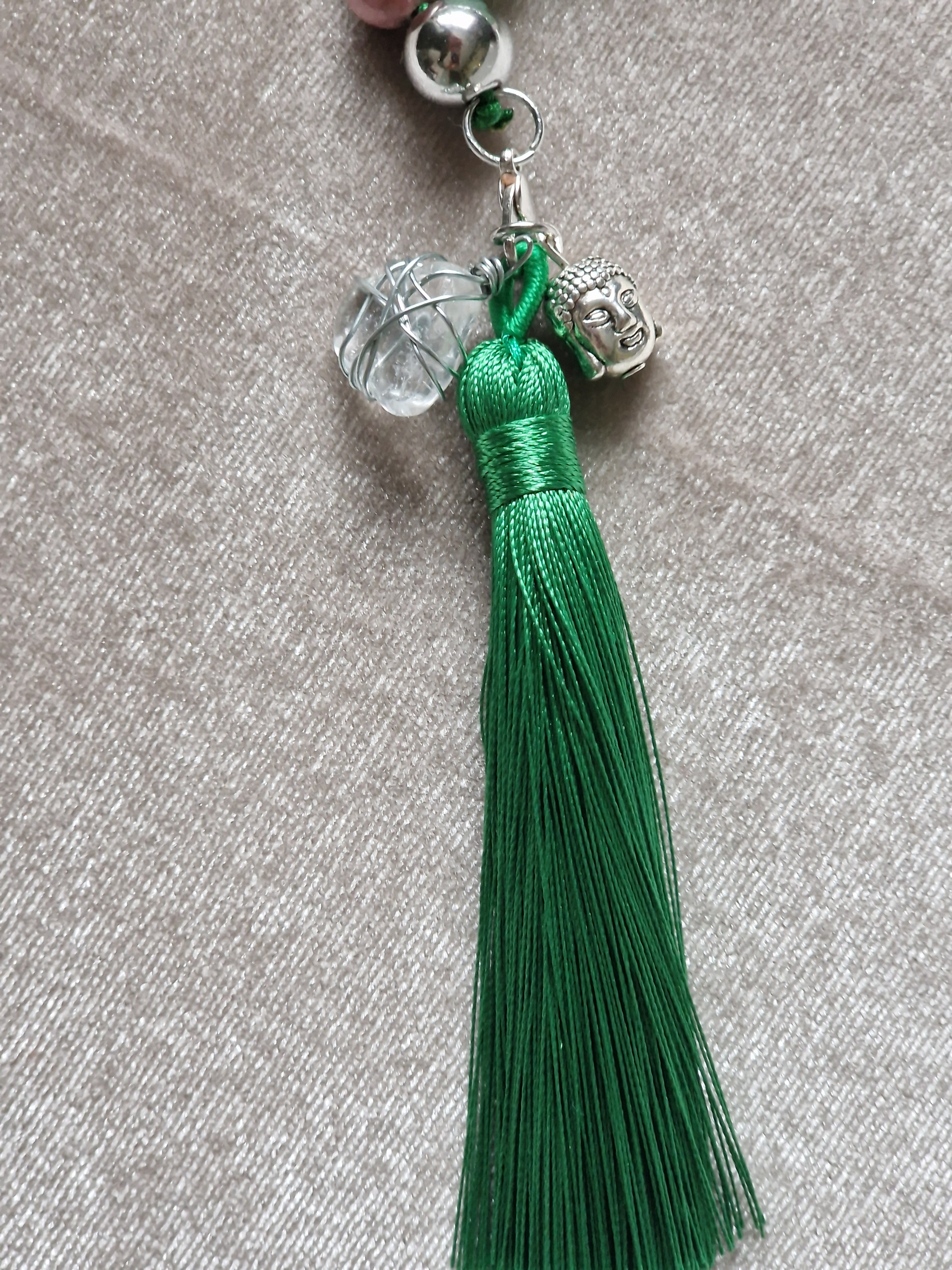 ✨ Das besondere Highlight dieser Mala ist der Bergkristall-Anhänger: