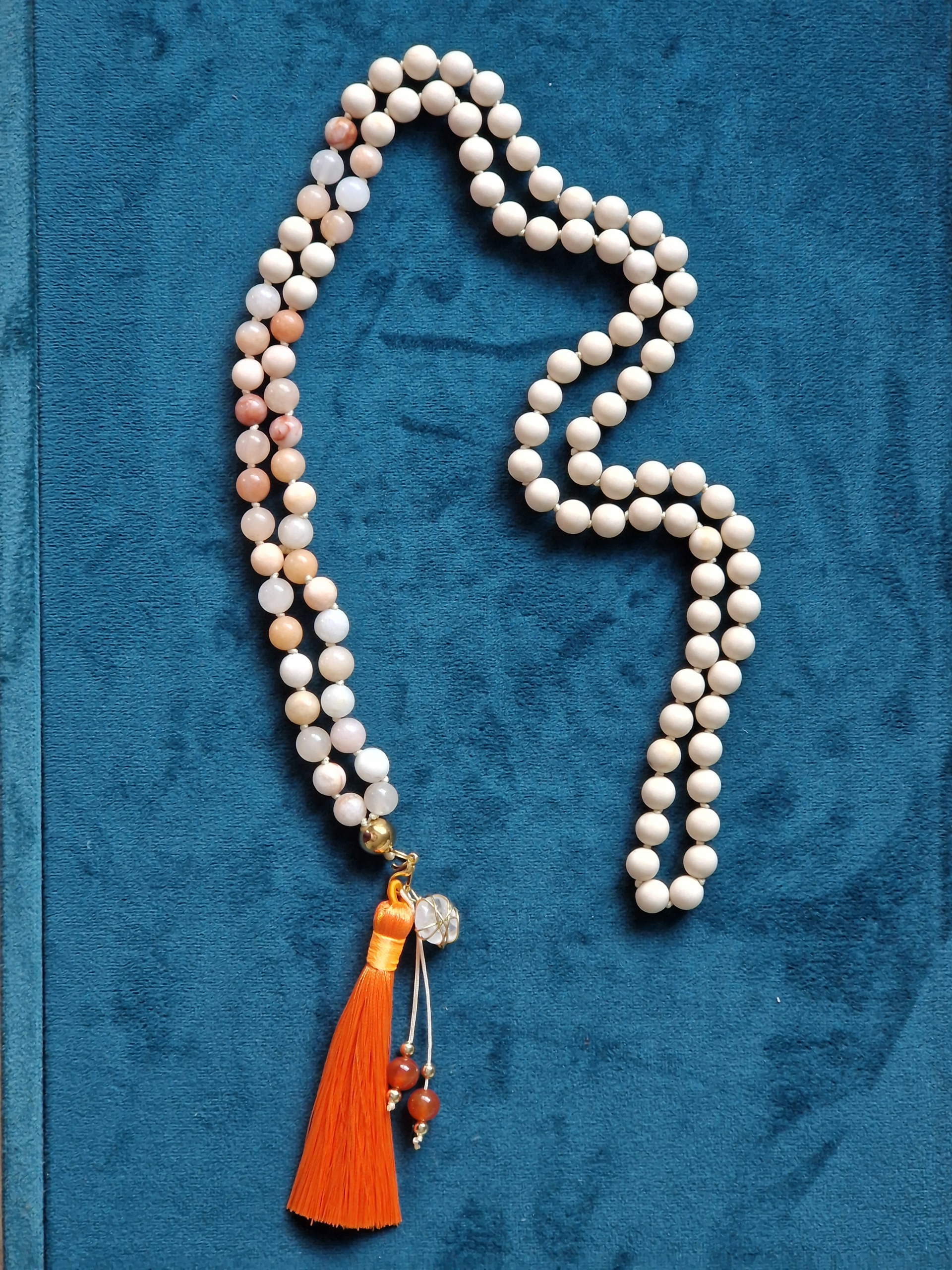 Diese Mala trägt eine sanfte, aber kraftvolle Energie – sie erinnert dich jeden Tag daran, dass alles, was du suchst, bereits in dir liegt.